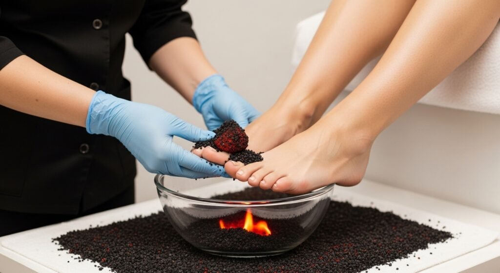 Book Express PediWhen used in a footbath, Himalayan salt may help remove toxins, increase blood flow, relax muscles, treat calluses, soften and nourish skin, and support healthier nails.